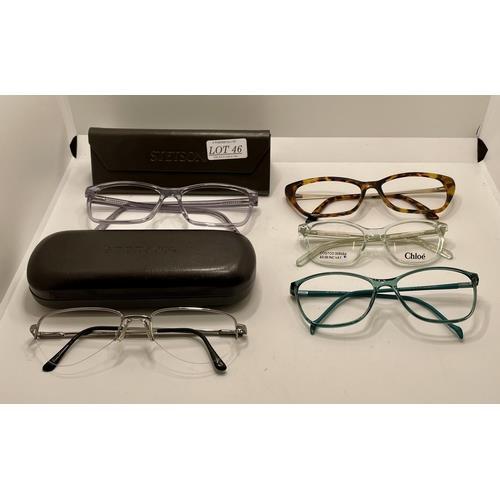 46. 5 X VARIOUS PAIRS OF SPECTACLE FRAMES INC. CHLOE, STETSON, MADE FOR YOU