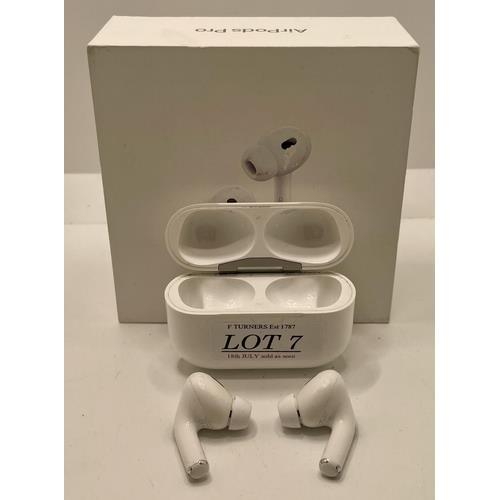 7. BOXED PAIR OF APPLE AIR POD PROS 2ND GEN IN WIRELESS CHARGING CASE WTH CHARGING WIRE AND EXTRA BUDS