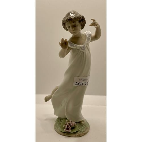 389. LARGE NADAL SPANISH PORCELAIN FIGURINE OF A GIRL IN TRADITIONAL DRESS TOGETHER WITH 2 X SPANISH PORCELAIN FIGURINES - ONE HOLDING CANDLESTICK, ONE HOLDING CAT -