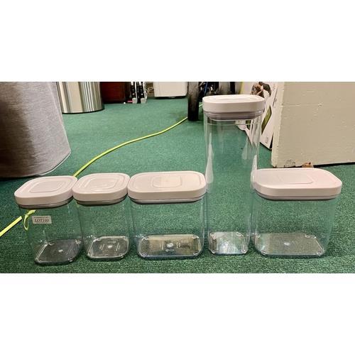 6. BOXED SET OF THREE STACKABLE DISPLAY CASESIDEAL FOR SHOES, LEGO , FIGURES ETC TOGETHER WITH A SET OF 5 15L STACKABLE STORAGE BOXED WITH LIDS (2 LIDS CRACKED)