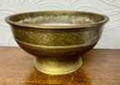 381. A LARGE CHINESE INFLUENCED SOUTH-EAST ASIAN BRONZE BOWL, 27.5CM DIAMETER AND 14.3CM HIGH