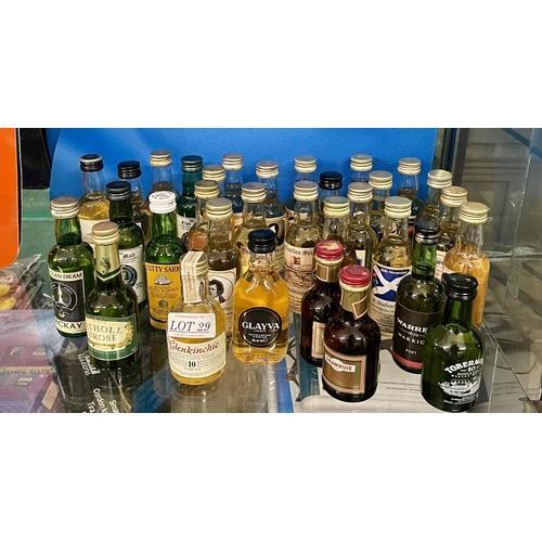 29. 32X MINIATURE (50ML) WHISKY'S AND LIQUEURSSINGLE MALTS, BLENDS ETC INCL GLENKINCHIE, THE CLAN MALT, GLAYVA, FAMOUS GROUSE, THE BARD'S BEST, DRAMBUIE ETC