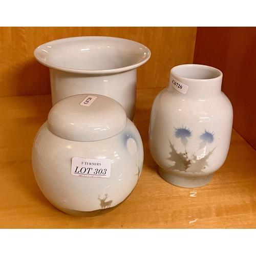 387. ROYAL WORCESTER HAND PAINTED VASE BY JACK SOUTHALL - C.1911 - A VASE DEPICTING WILD ROSES WITH GILDED DECORATION - SIGNED 'JACK SOUTHALL' - H:26CMS TOGETHER WITH A ROYAL WORCESTER PLANTER WITH HANDPAINTED FLORAL DESIGNIN THE MANNER OF JACK SOUTHALL
