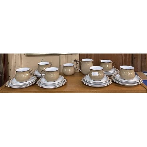322. DENBY BROWN/WHITE COFFEE SET - 6 CUPS/6 SAUCERS/6 PLATES MILK AND SUGAR