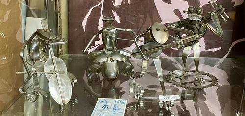327. A WILLET FETTLE RECYCLED METAL FROG CHORUS BAND INC. DRUMMER, BASS GUITARIST, VIOLINIST ETC.