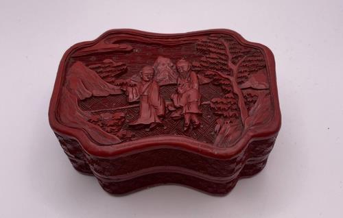 375. A 19TH CENTURY CHINESE SHAPED CINNABAR LACQUER BOX AND COVER , 10CM.W X 4.5CM.H