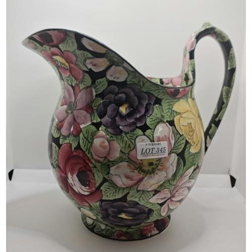 388. THOMAS TILL & SONS (Staffordshire) - HANDPAINTED JUG FLORAL & BLACK GROUND DESIGN -BY J H BOURNESIGNED 'J H BOURNE 1916' H:28CMS X W: 28CMS - A LARGE EARLY 20TH C. PITCHER HAND PAINTED WITH INTENSE FLORAL DESIGN