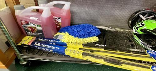 70. MIXED CAR LOT - INC.2 X 5L SHAMPOO/WAX, SET OF 4 RUBBER MICHELIN CAR MATS, MICHELIN WIPER BLADES, CAR WASH MITTS
