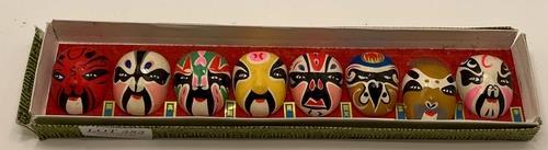 383. 8 X PEKING OPERA PAINTED MINIATURE FACE MASKS IN ORIGINAL BOX
