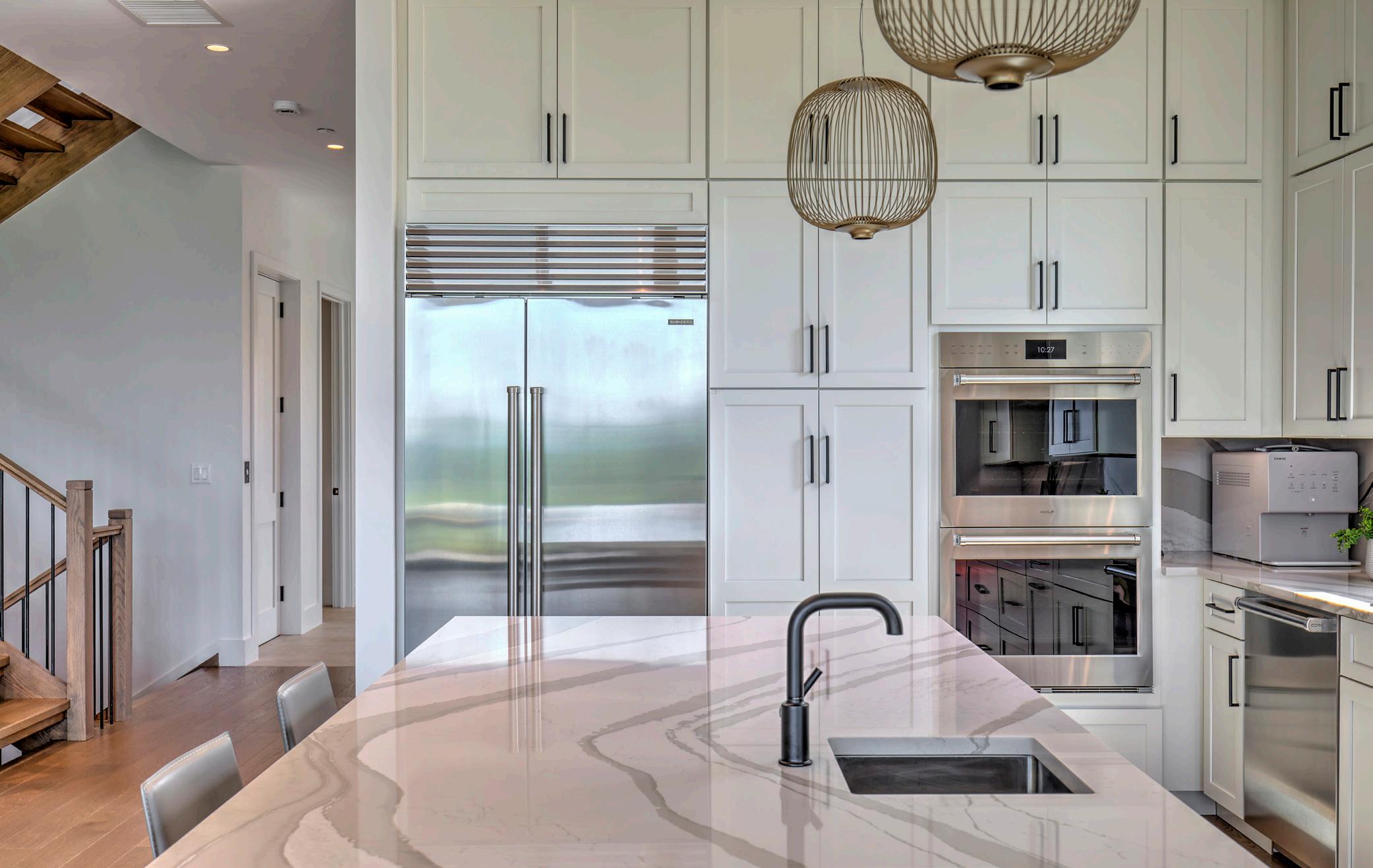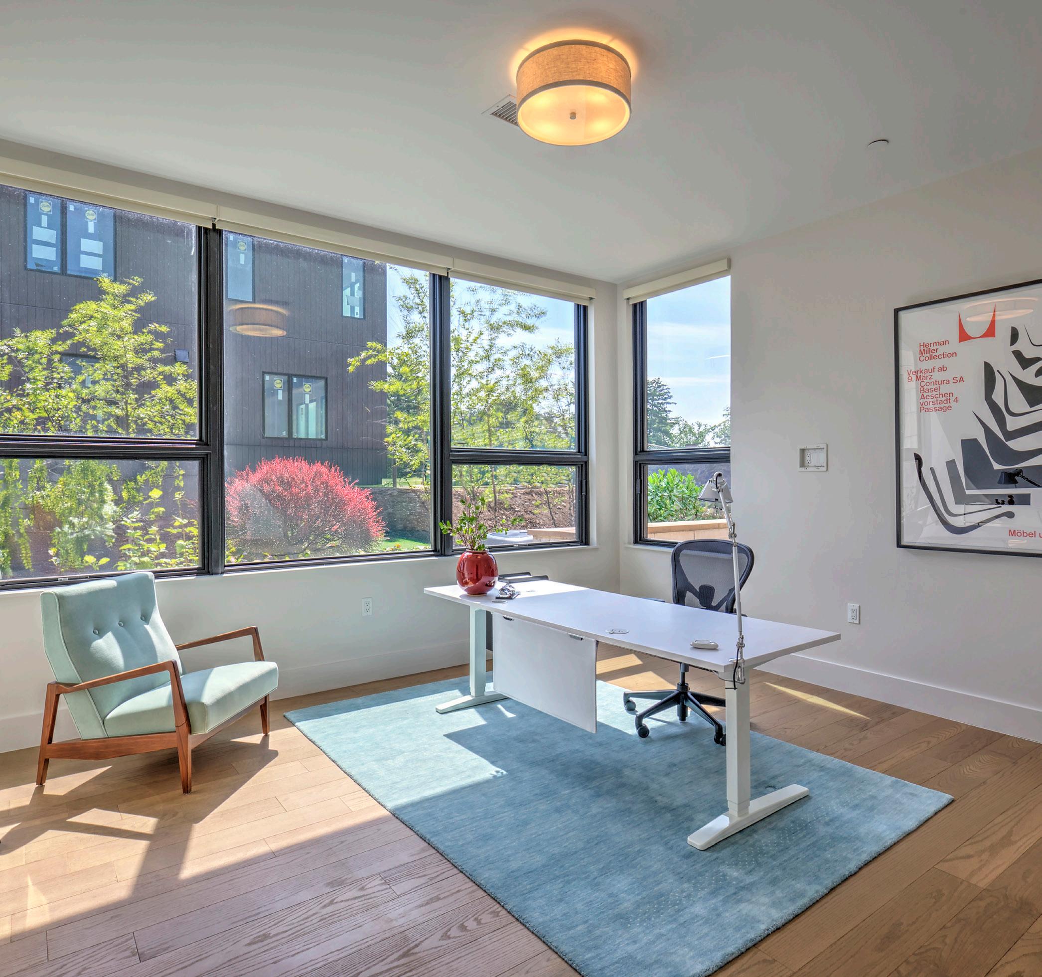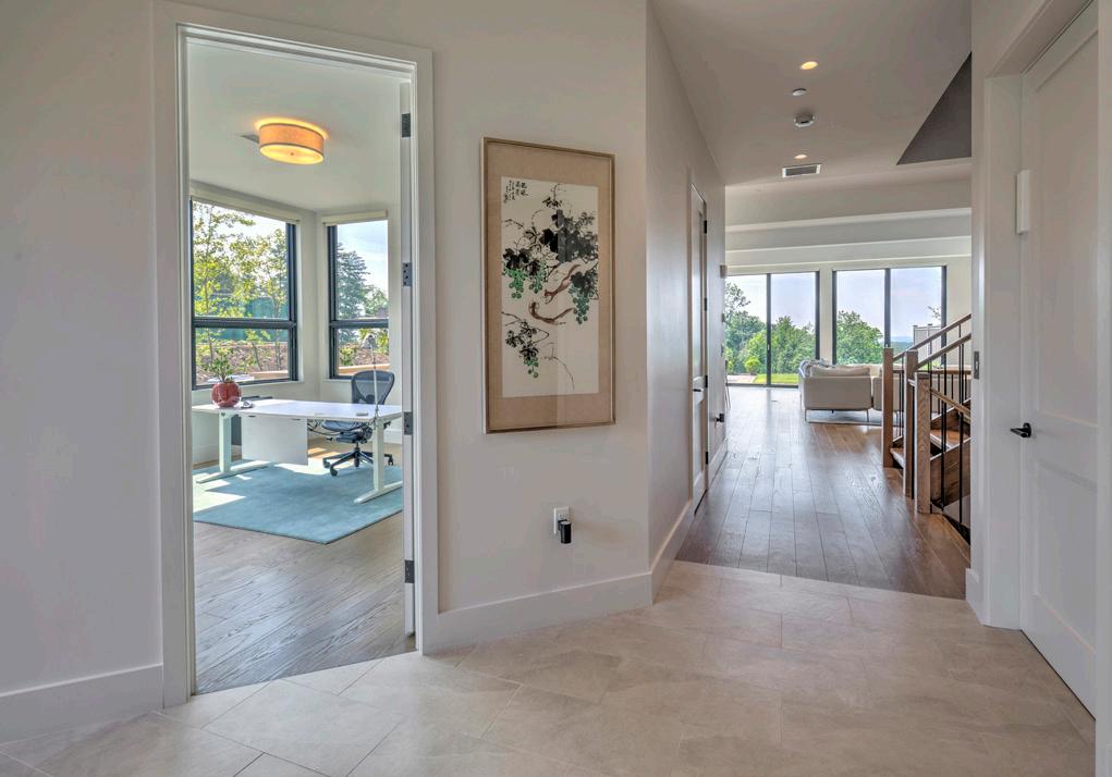 This new listing employs a traditional townhouse layout on four finished levels featuring natural materials, expansive Pella window walls and doors capturing panoramic countryside vistas and a sleek layout designed for modern living. The architecturally nuanced exterior finished in maintenance-free Nichiha cement fiber siding and cultured stonework is bordered by professional landscaping and hardscaping.