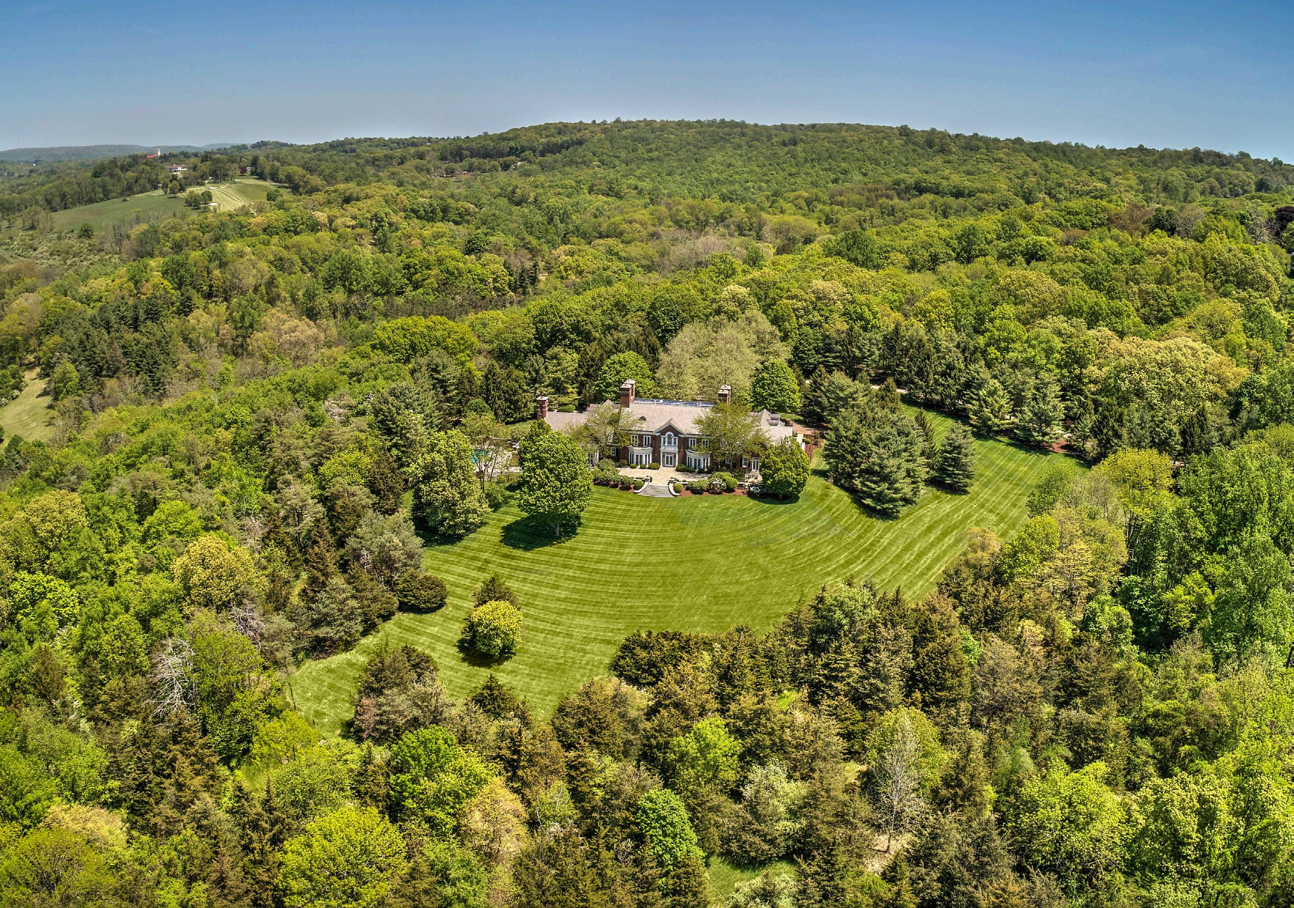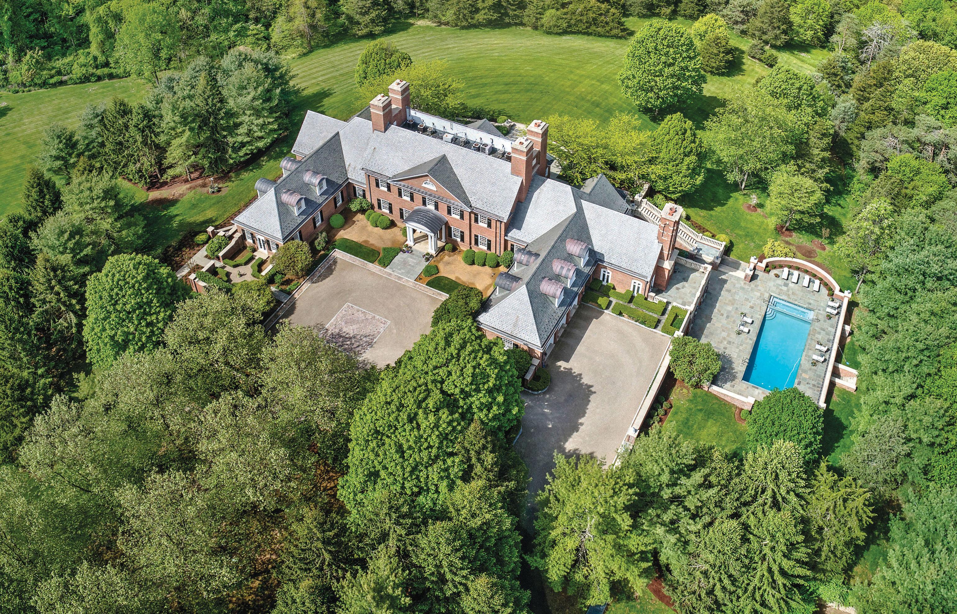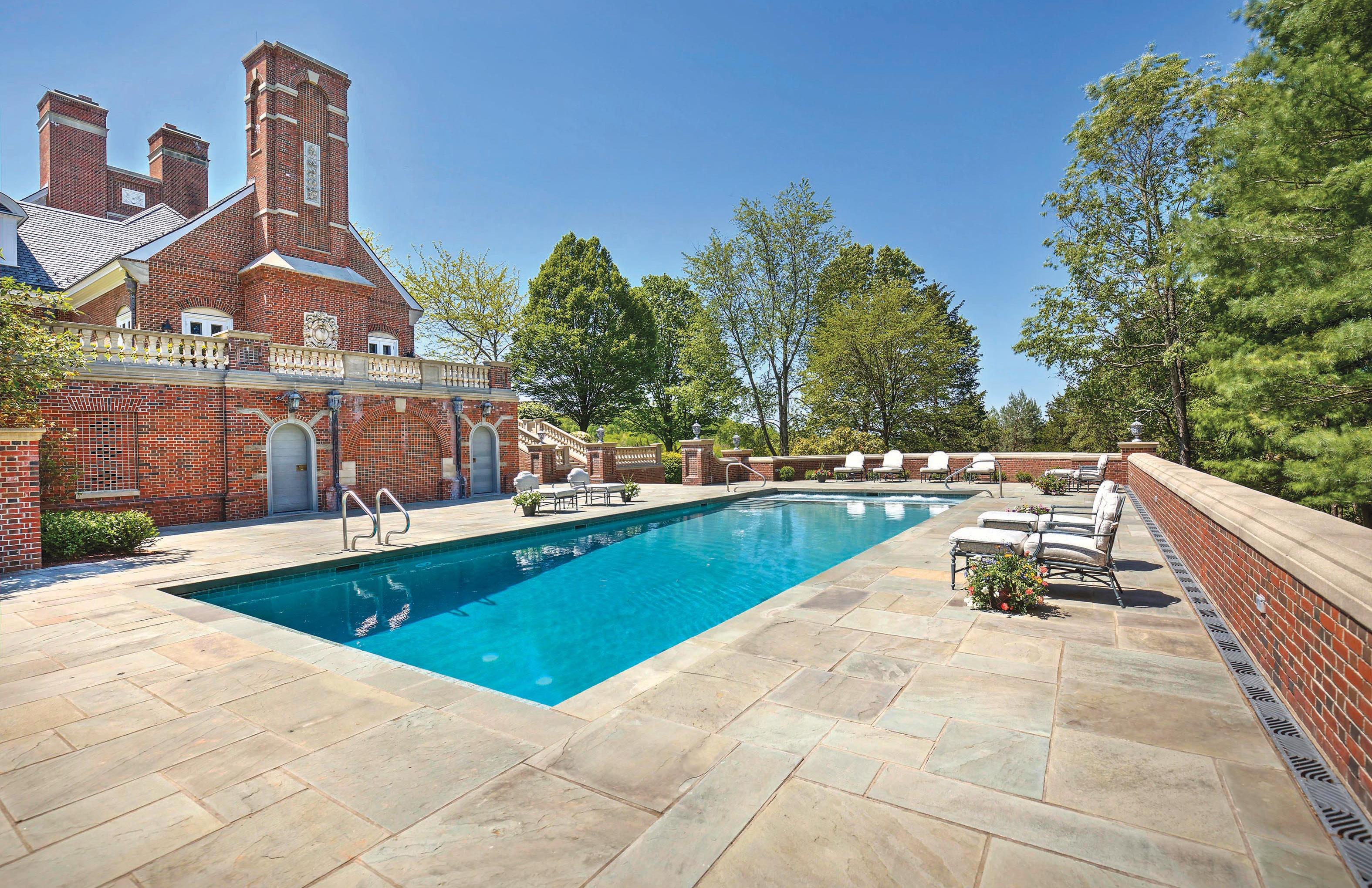 Privately secluded on 32+ acres overlooking westerly hillsides, this distinguished estate is unique in its capability to protect and endure. Reminiscent of a turn-of-the-century all-brick Georgian Mansion with a true slate roof, the estate’s location atop the Bernardsville Mountain is wrapped by breath-taking grounds and captivating views. A handsomely gated entry is augmented by multiple security systems, while its concrete and steel beam construction brings walls to almost 2-ft thick. Meticulous detail and unparalleled craftsmanship created finely appointed rooms of both grand and intimate proportions accented by antique architectural elements; exquisite wood floors; 10’ ceilings defined by hand-milled moldings; and a masterfully crafted 2-story library with softly lighted dome. A sprawling walk-out recreation level includes a spa, sauna, card room, billiard room, media/family room and access to the pool. For those who work from home: a multi-room office suite on this level includes a separate entry and kitchenette. For serious wine collectors: a brick groin-vaulted wine cellar for 16,355+ bottles and an elegant tasting room. A separate 4-bedroom cottage is ideal for staff or guests. A silent underground generator runs the entire property. One of the most important estates in New Jersey is less than an hour’s drive to New York.