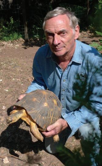 Bernard Devaux with a Radiated Tortoise (Astrochelys radiata).