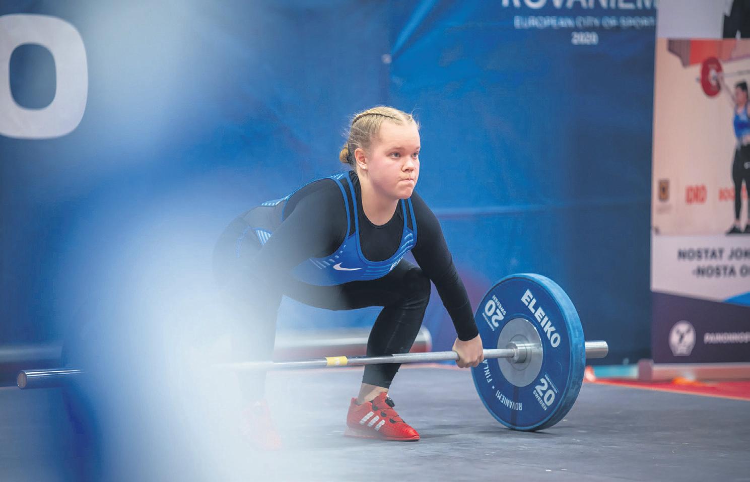 Sauvossa asuva painonnostaja Miina Valtonen osallistuu marraskuun puolivälissä Kööpenhaminassa järjestettäviin nuorten PM-kisoihin. Kuva viimevuotisista PM-kilpailuista, joihin Valtonen osallistui