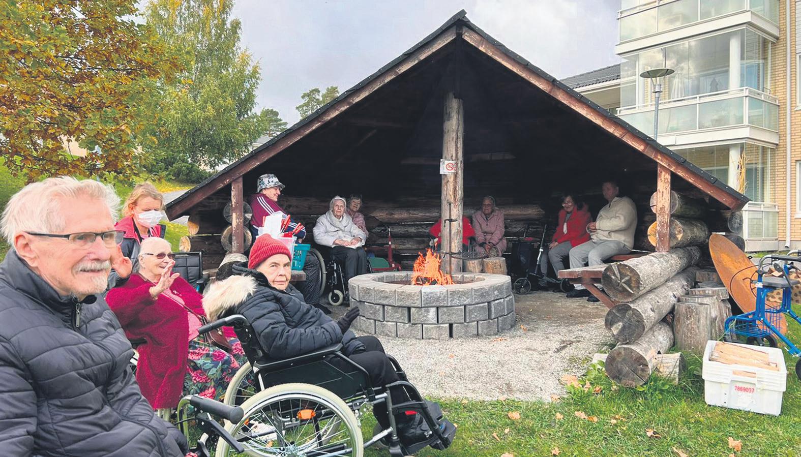 turun seutusanoMatVähäheikkilä-Hirvensalon kotihoidon asiakkaat kävi vät laavulla Vanhustenviikol la. Kuva: Päivi Pihlajakallio.