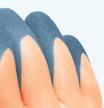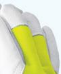 Synteettinen premium-laatuinen nahka Tämä materiaali eroaa tavallisesta synteettisestä nahasta, sillä siinä on lisätty liukastumista estävä kuviointi, joka tuntuu sametinpehmeältä. Näissä käsineissä työkalut pysyvät aina tukevasti kädessä.