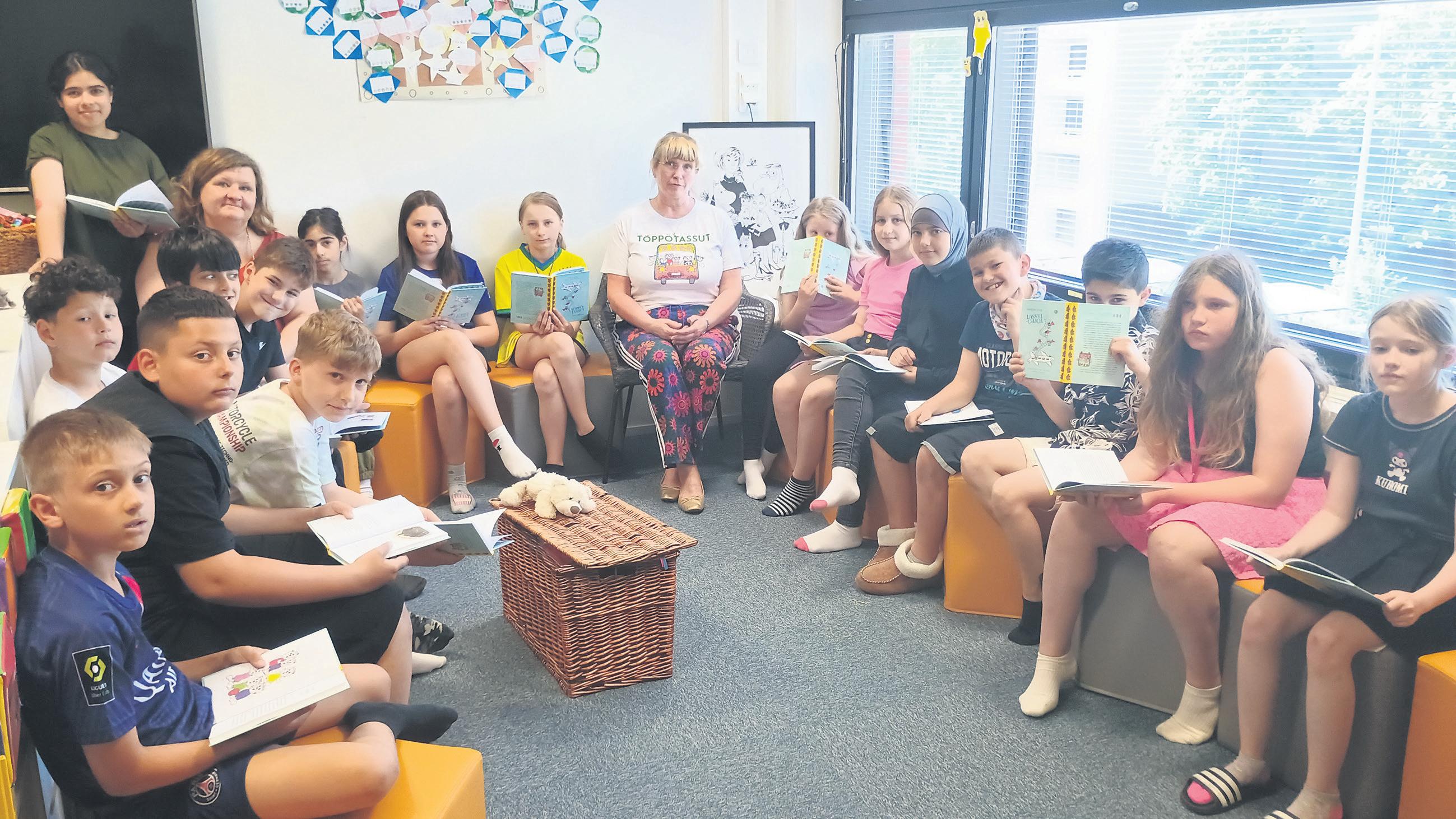 Oppilaat ovat keskittyneet lukemaan turkulaisen esikoiskirjailijan Taija Ruuhijärven Töppötassut – Suuri seikkailu -teosta.