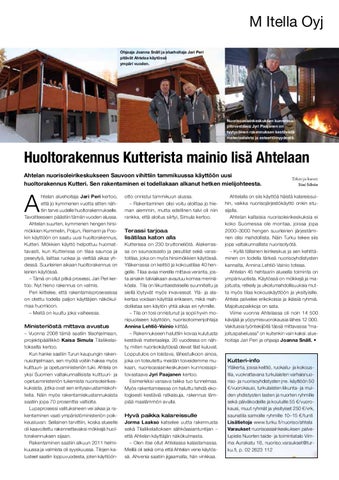 Huoltorakennus Kutterista mainio lisä Ahtelaan Ahtelan nuorisoleirikeskukseen Sauvoon vihittiin tammikuussa käyttöön uusi huoltorakennus Kutteri. Sen rakentaminen ei todellakaan alkanut hetken mielijohteesta.