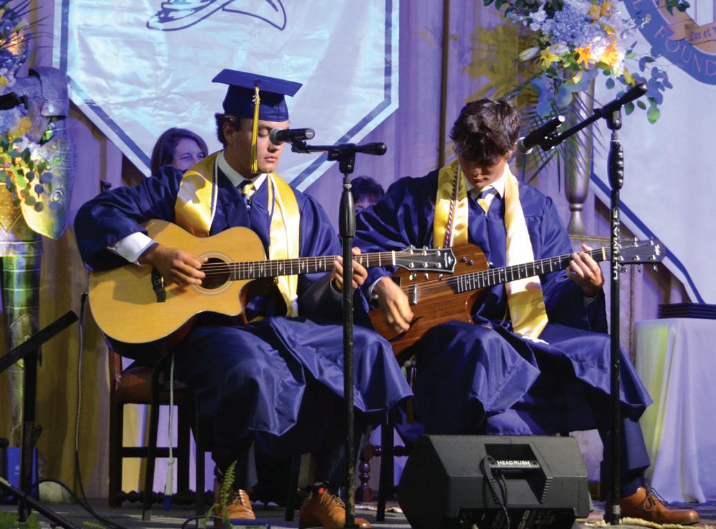 On May 19, 2022 at the 50th Commencement, Interim Head of School, Alan Barr, delivered a message to the Class of 2022 and their families. He spoke about wishing he had more time to spend with the seniors, as the song “Five More Minutes” goes, which was performed by Phillip Lancaster and Jack Standeffer during the ceremony. He lamented how COVID took a toll on the faculty and students in the TA community. Mr. Barr encouraged them to remember the good times and to learn from their struggles over the past years. “These memories and lessons will serve you well as you go forward in your very young lives.”
