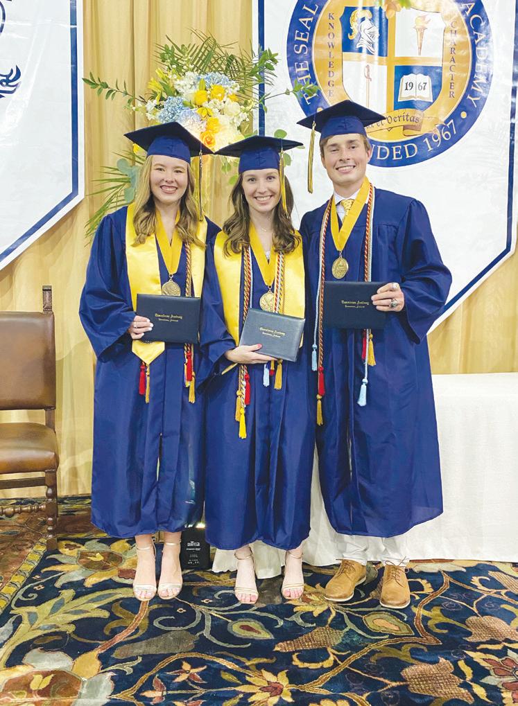 Co-Salutatorians Mary Alice Roe and Morgan Smith with Valedictorian, Carson Claytor