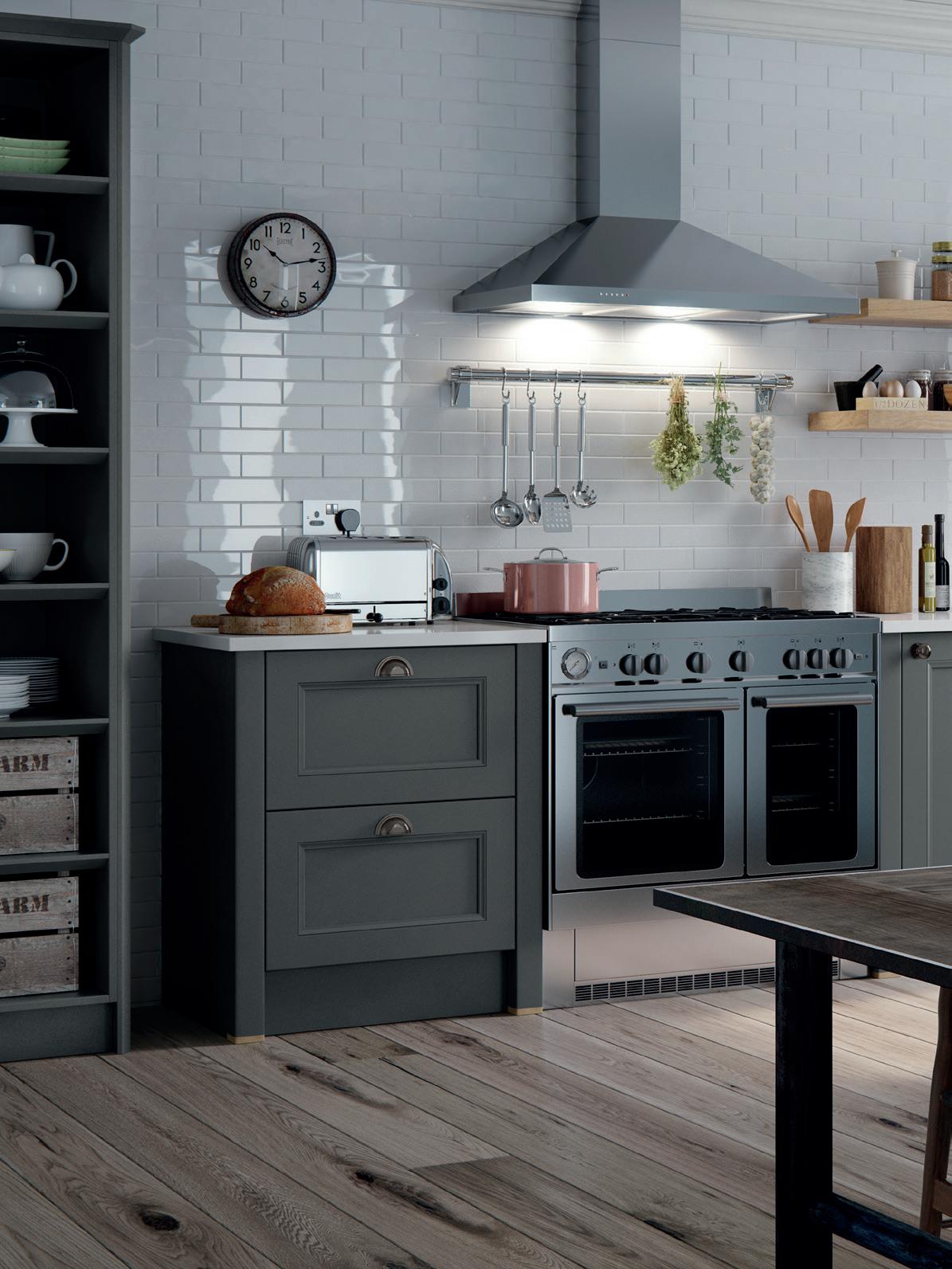 Timeless never stands still. There’s always another take. Another interpretation. You’ll see it where contemporary brushed steel sits alongside muted, farmhouse kitchen paint tones. Where a simple, shaker style cabinet door opens to reveal the hi-tech hardware and modern manufacturing that makes it so durable. Everywhere you look, in fact, across the next 118 pages.