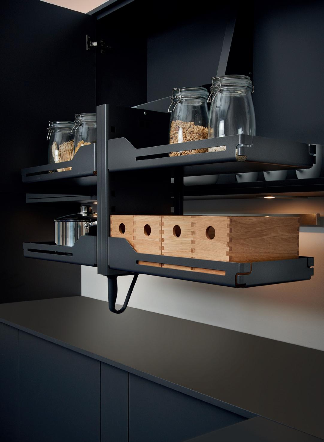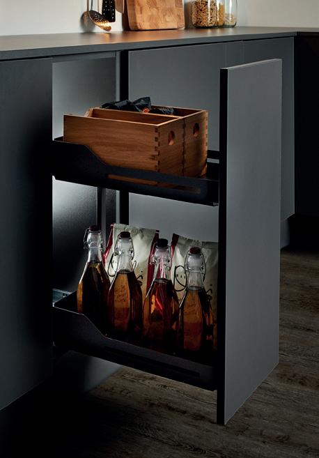WHATEVER THE SIZE OF YOUR KITCHEN, you can create extra space with a wide range innovative storage solutions. Anthracite or Anthracite with Oak Panelling options make them as stylish as they are practical.