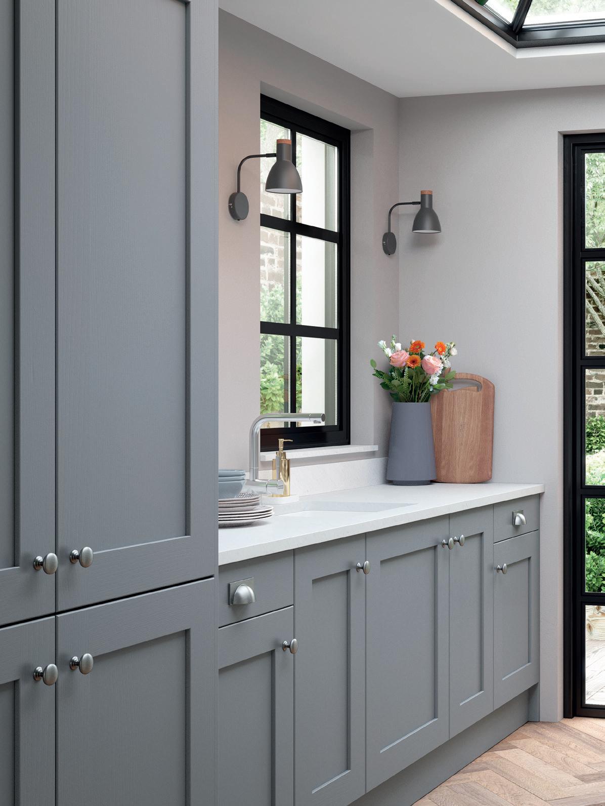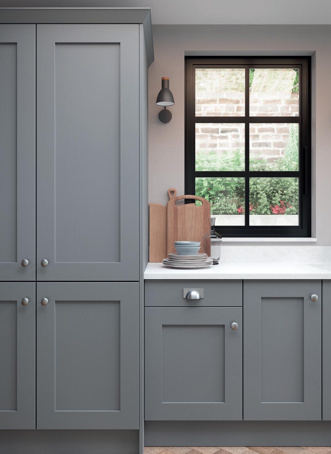 IN EQUALLY RELAXING tones of Light and Slate Grey, Eildon makes for a serene retreat from the busyness of everyday life. A raised and fielded centre panel brings an extra touch of elegance to this classic shaker style.