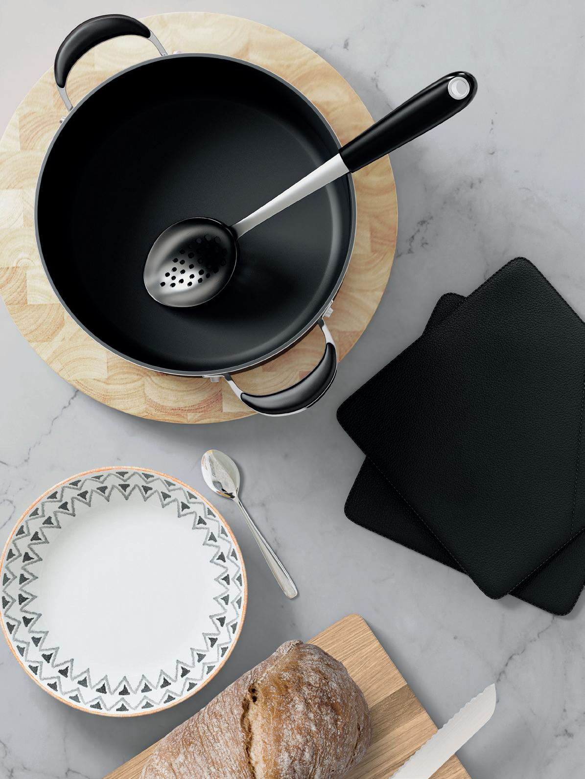 ‘Form follows function’ is the mantra of all good kitchen design. But within those apparently severe constraints is a universe of kitchen essentials like pots, pans and chopping boards that reflect your sense of style and do their job brilliantly. Choose wisely and the objects you fill your kitchen with will delight you every day.