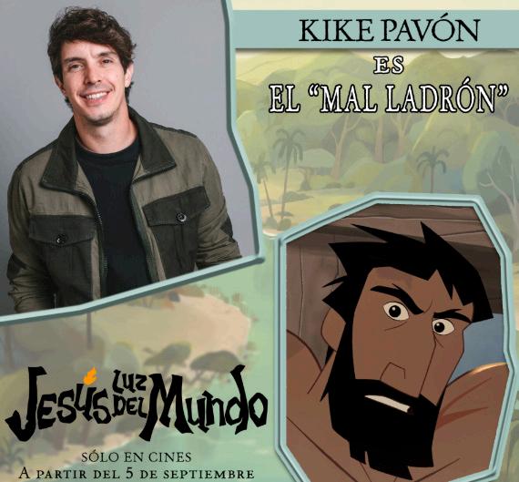 Kike dio voz a cuatro de los personajes de la película animada Jesús Luz del Mundo, en España es Mateo y en Latinoamérica, el ladrón malo, Barrabás y un soldado
