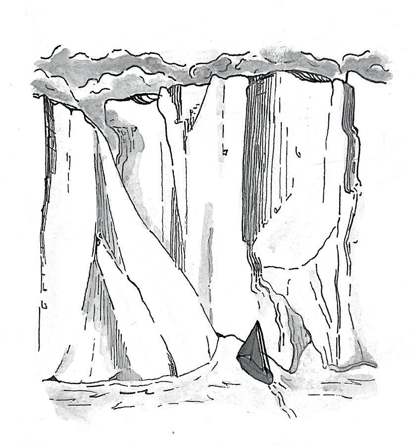 Joitain kymmeniä metrejä aluksemme sivulla ryhävalaan selkä rikkoo pinnan. Valas on liikekannalla. Syykin on selvä: parinsadan metrin päässä kalaparvi saa meren väreilemään. Merilinnut kaartelevat. Aluksemme kääntyy seuraamaan. Valaan pieni selkäevä katoaa juuri ennen parvea. Katseiltamme piilossa se avaa valtavan kitansa ja kuin höyryveturi valas jyrää parven läpi. Muutamia metrejä parven takana erotamme taas tumman muodon. Aaltojen alla valas puristaa ylimääräisen veden hetuloidensa läpi ja nielaisee sata-