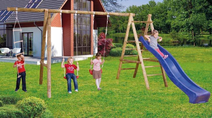 Struttura con doppia altalena e scaletta in legno trattato per esterno, con ganci removibili, 450 x 200 x 230 (H) cm, scivolo di plastica disponibile separatamente