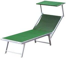 Struttura in alluminio con schienale regolabile e tettuccio parasole. Tessuto in PVC, disponibile in diversi colori, 195 x 61 x 39 (H) cm