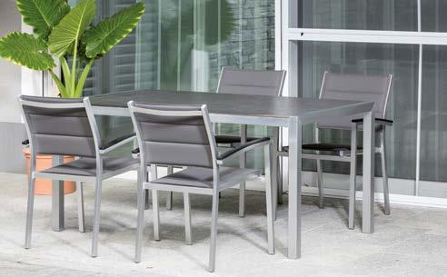 Tavolo con sedie da esterni in alluminio, ottimo per terrazze o balconi di grandi dimensioni, rivestimento in textilene, sedute e schienali imbottiti, colore antracite