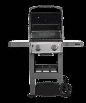 Weber Spirit II E-210 GBS. Compatto e dotato di piano cottura con 2 bruciatori a gas, larghezza piano cottura 52 cm, portaog getti laterali pieghevoli, con 2 comode e robuste ruote; misure pi astra 52 x 46 cm