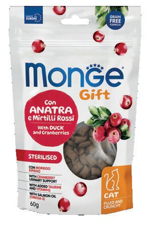 Monge Gift Vegetal. Alimenti complementari per cani e gatti, senza coloranti e conservanti artificiali aggiunti, disponibile in diverse varietà e gusti