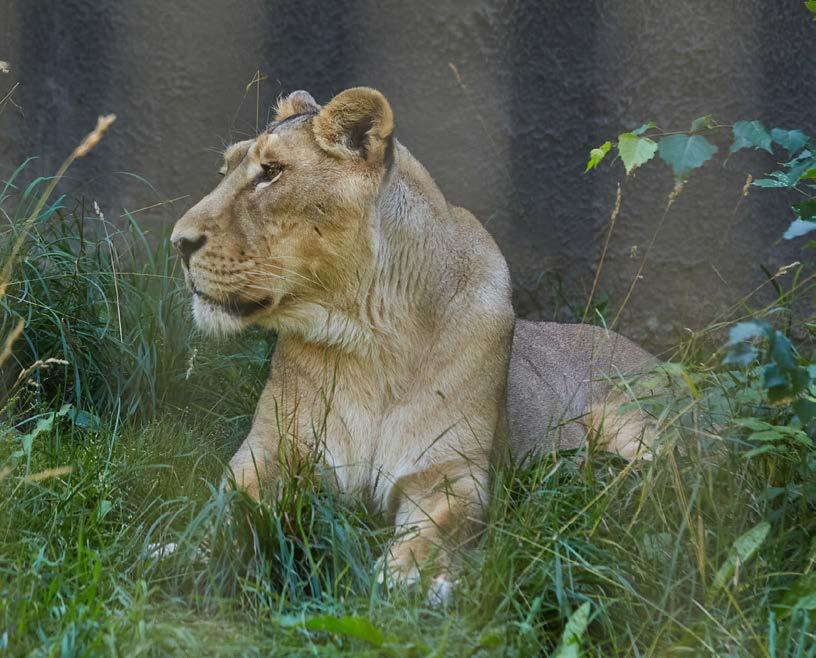 Kissalaaksossa on monenlaisia kissaeläimiä: tiikeri, lumileopardi ja muita. Riemastuin, kun leijonat olivat nyt näkyvillä, ne olivat naarasleijonia. Sain muutaman hienon kuvan. Urosleijonaa ei näkynyt, mutta kohta selvisi, että sellainenkin siellä on. Kymmenen metrin päästä, vähän piilosta kuului nimittäin sellainen ärjyntä, että oksat pois. Urosleijonan ärjyntä voi kuulua kahdeksan kilometrin päähän, joten arvatkaa miltä se kuulosti kymmenen metrin päästä. Siellä on uusi uros, vanha Kamal-niminen on varmaankin nukkunut pois. Tämä uusi on tuotu espanjalaisesta eläintarhasta. Se oli piilossa sen verran, että kuvia ei tullut, mutta se ärjynnän kuuleminen korvasi tällä kertaa kuvat.