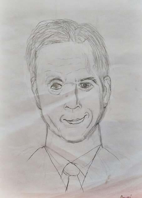Taide kuuluu osana ihmisen kulttuuriin, joten päätin ehdottaa kuvataiteen harrastajana lyijykynäpiirtämisen kurssia halukkaille klubitalolla. Mukaan ilmoittautui neljä henkilöä. Olin valokuvannut taiteilijoiden mallinuken kotona ja se näytettiin isolla padlet–näytöllä, josta piirrettiin.