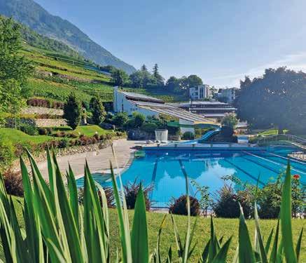 Die Erholung, das Erlebnis – Sternstunden des Wohlbefindens Therme Meran, Thermenplatz 9, I-39012 Meran, Tel. +39 0473 25 20 00, www.thermemeran.it Im Herzen der Stadt, ein paar Gehminuten von den Lauben und der Kurpromenade entfernt, liegt die Therme Meran. Die Badelandschaft mit 13 Pools im Innenbereich und 12 Pools im Außenbereich (nur im Sommer geöffnet), sowie acht Saunen bieten alle Facetten der Entspannung und Erholung. Das Spa & Vital Center verwöhnt seine Gäste mit Molkebad, Apfelcreme Massage, Traubenkern Peeling und mehr – alle Ingredienzien der Anwendungen und der hauseigenen Kosmetiklinie stammen aus der Region. Sportlich Aktive powern sich im Fitness Center der Therme aus.