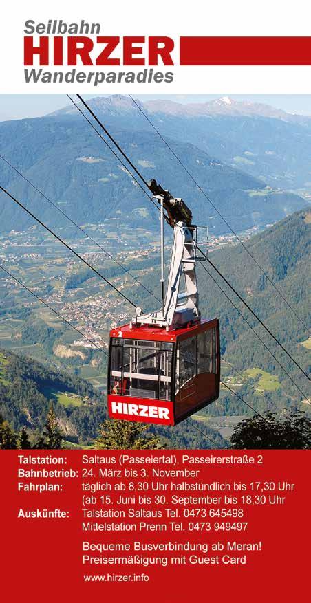 Südtirol Express: jeden Samstag von 11.04. – 31.10.2026 von der Schweiz nach Naturns. www.suedtirolexpress.ch, www.heini-car.ch. Tel. +41 712 981111