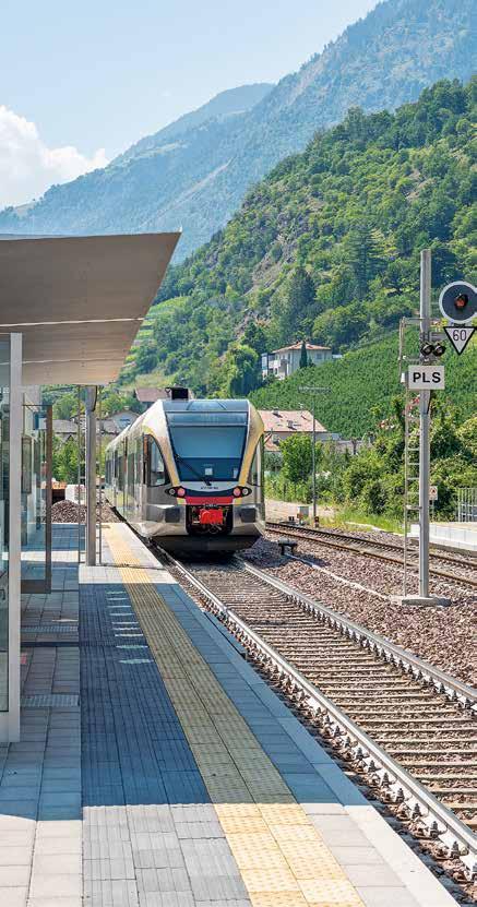 Bahnlinie Bozen–Meran–Mals. Tickets sind direkt am Automaten an den Bahnhöfen erhältlich. Weitere Infos unter Mobilität. Vinschgerbahn: www.vinschgerbahn.it | Staatsbahnen: www.trenitalia.com