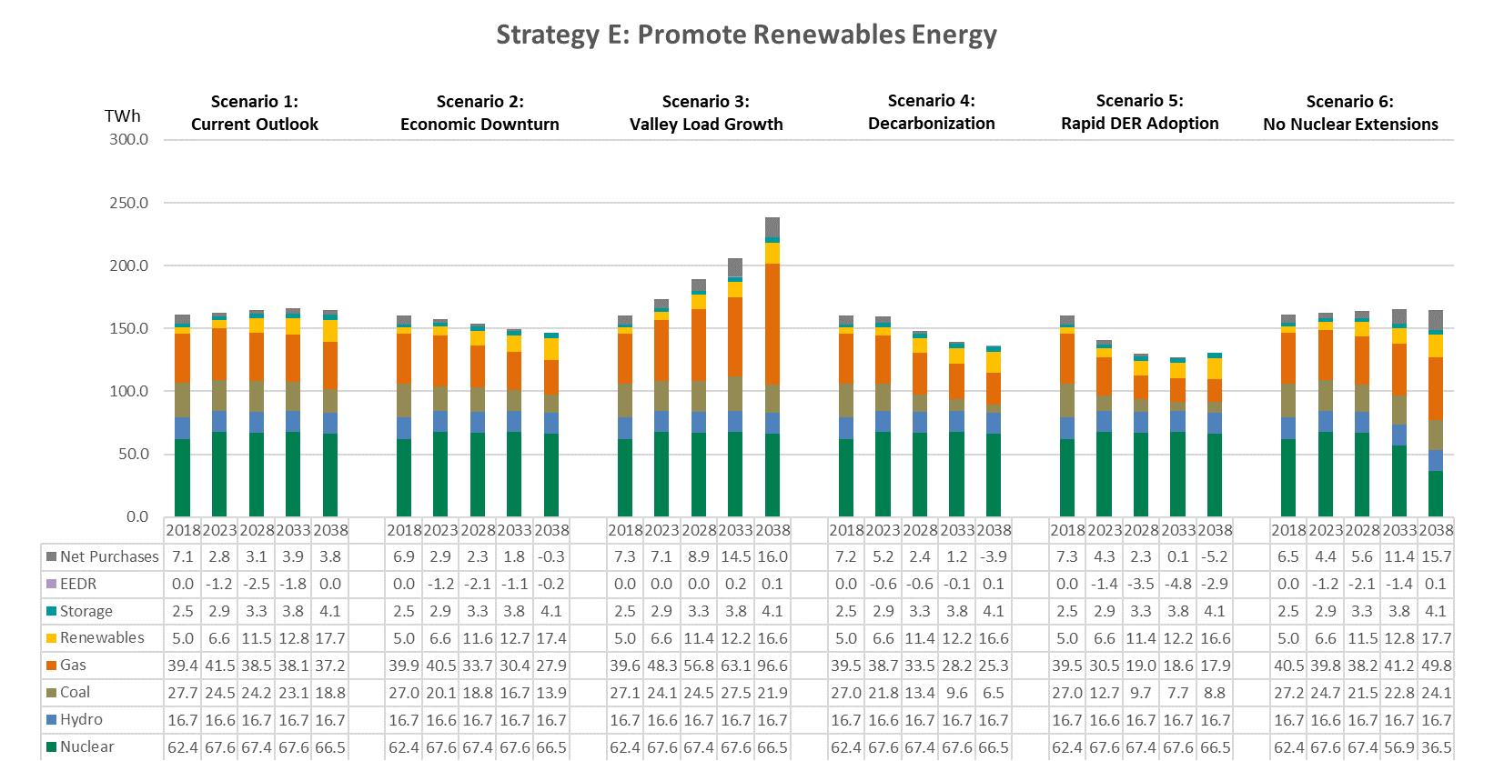 With input from the IRP Working Group, TVA developed five strategies, which are business decisions or directions that TVA could employ in each scenario. As it relates to strategies in the IRP, the word “promote” means an incentive was modeled to make the resource more attractive for adoption or selection. The five strategies are :