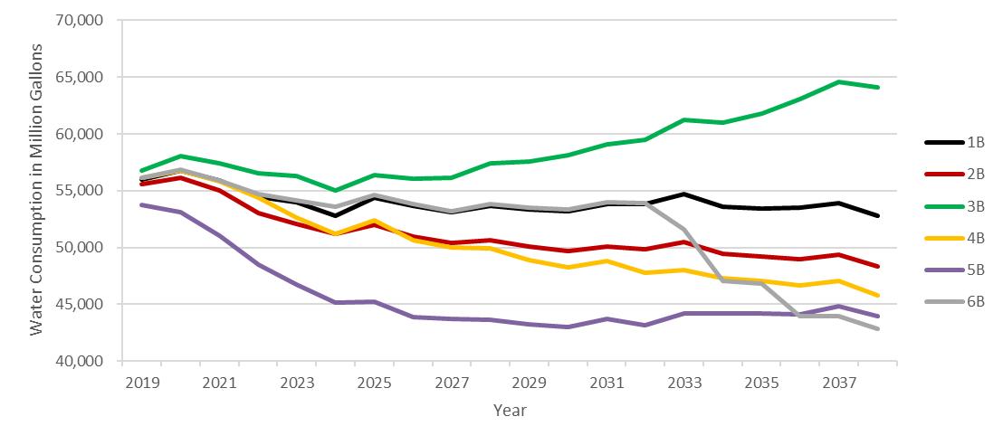 Table J-2 presents the average change in the TVA region’s total non-farm employment due to each strategy. Once again, the difference in all scenarios across all strategies is quite small. From 2019 to 2038