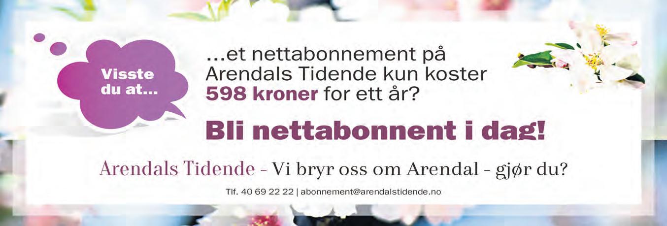 Abonnement: 40 69 22 22 | abonnement@arendalstidende.no