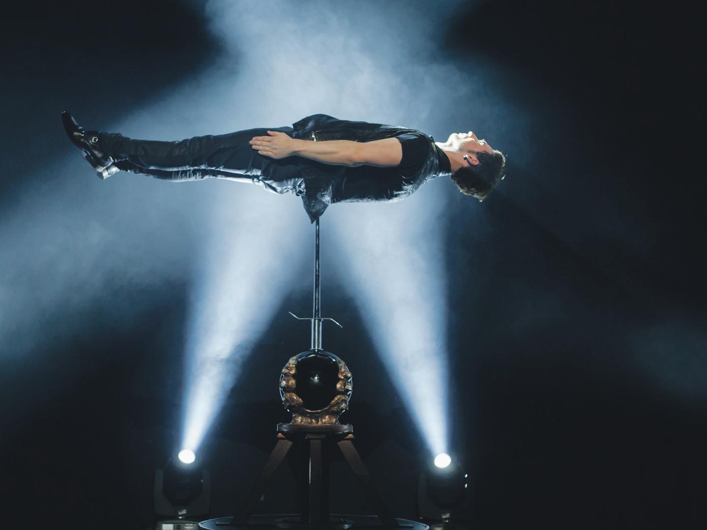 Live uten norsk sammenligning. Han skal nemlig få personer til å sveve, dele seg selv i to og forsvinne i løse luften.
