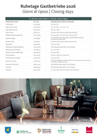 Kein Ruhetag | Sempre Aperto | No Closing day