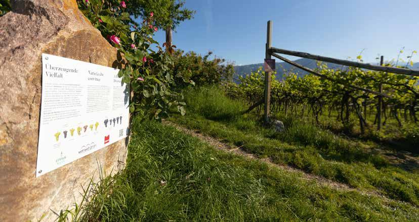 THE EDUCATIONAL WINE TRAIL IN GIRLAN leads right through the sun-drenched slopes of the wine village and ideally combines nature, viticultural knowledge and gentle movement. Along the roughly 1.6 km circular route, visitors can discover what makes the wine landscape around Girlan so special.