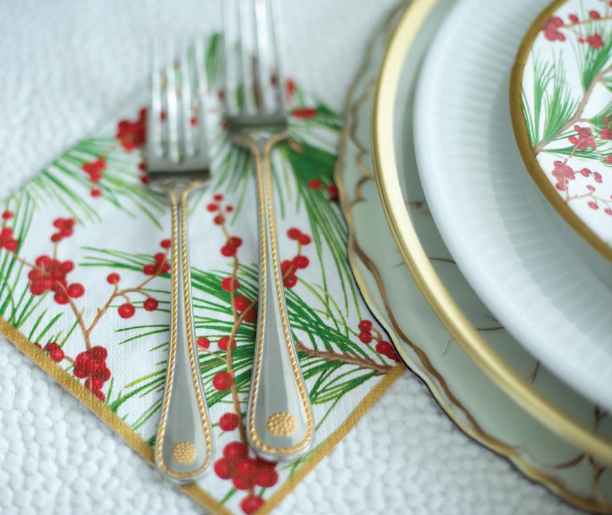 Ethvert bord, kan blive det perfekte bord ved bare lige at tilføje en anderledes serviet. Servietterne fra Caspari er produceret med FSC certificeret papir. Blegeprocessen er med oxygen i stedet for klor, og farverne er vandbaserede, miljøvenlige og biologisk nedbrydelige. Der er virkelig tænkt på miljøet.