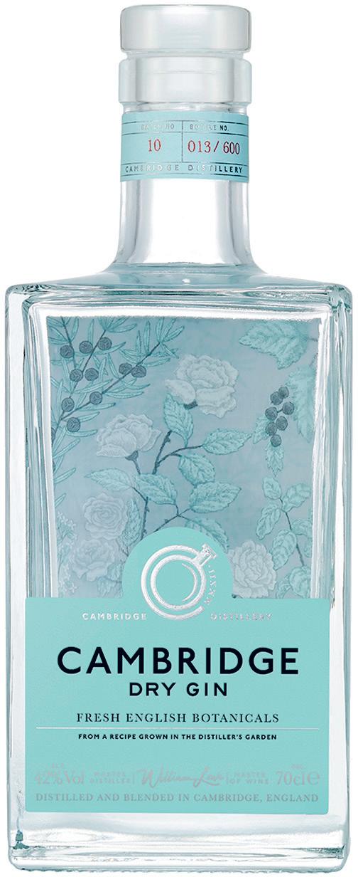 En perfekt gin der udtrykker smag og dufte fra en Engelsk have om sommeren. Tør, let, dejlig kompleksitet, med frisk basilikum og rosmarin. Elegante noter af roser og og enebær. Livlig citrus afslutning fra citron verbena. Literpris kr. 570,Perfect serve: 5 cl Cambridge Dry Gin, 12 cl Indian Tonic, frisk mynte