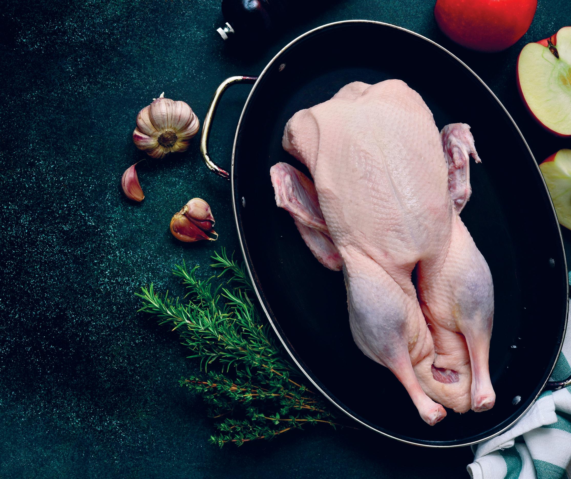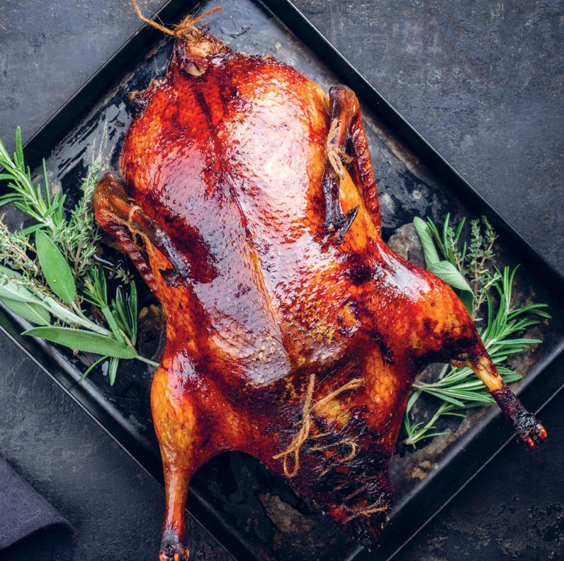 Hele december måned kan du bestille en hel stegt gul fransk Berberiand (har ikke været frosset) m/æbler & svesker