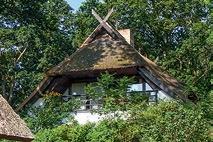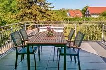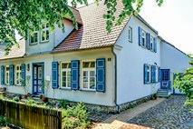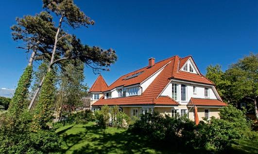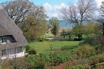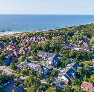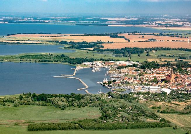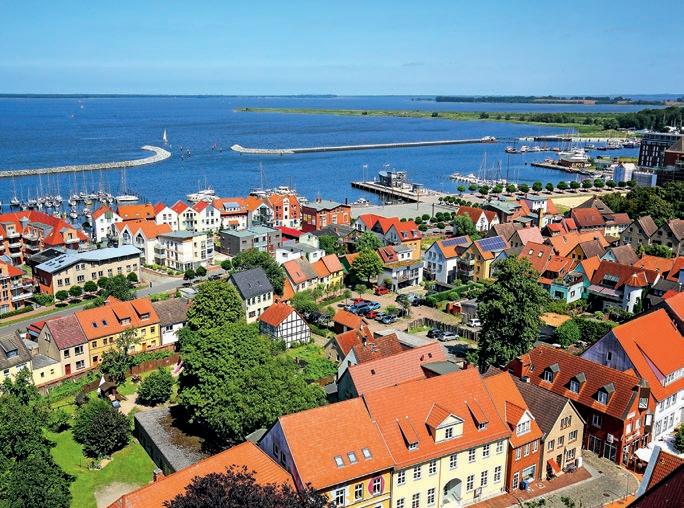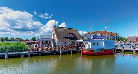 sich ein wunderbarer Blick auf das Ostseebad, den belebten Hafen und den Ortsteil Barnstorf mit seinen rohrgedeckten ehemaligen Bauerngehöften.