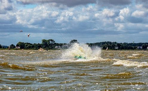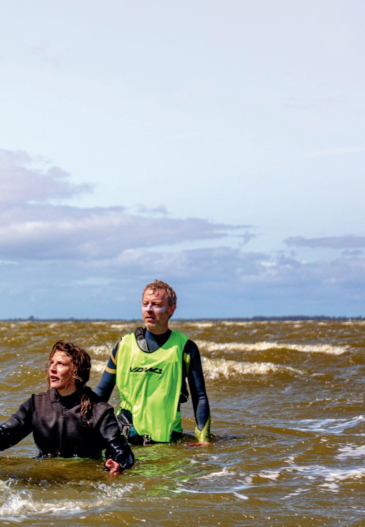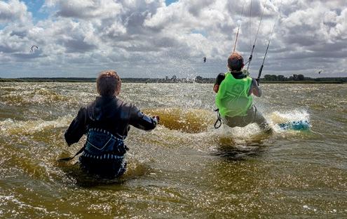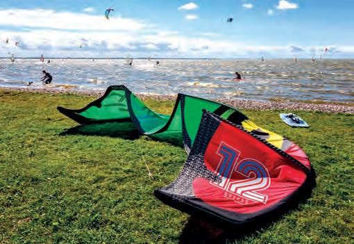 Meter hoch ist der aktuelle Sprung-Rekord beim Kitesurfen (bzw. 107 km/h ist der aktuelle Geschwindigkeits-Rekord beim Kitesurfen). Auf dem Saaler Bodden geht es deutlich gemächlicher zu, sodass das Revier besonders für Anfänger:innen geeignet ist (Seite 28).